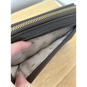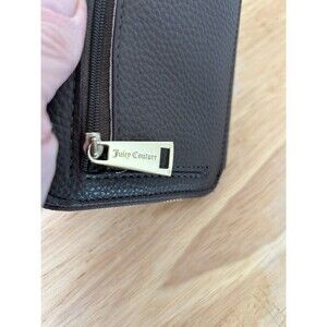 Juicy Couture Zip Around Wallet Bifold Credit Cards Faux Leather Lock Pockets, Brown