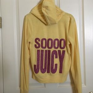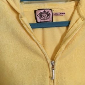 Soft yellow terry cloth Juicy Couture Zipup Hopdie. In perfect condition. Worn once. Two pockets in front with sparkly design in back.