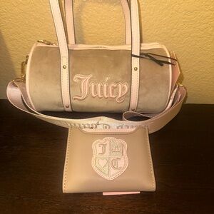 Juicy Couture brown embroidered barrel bag and wallet