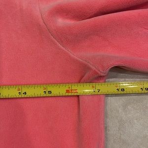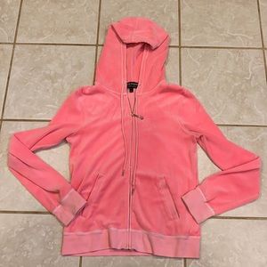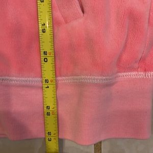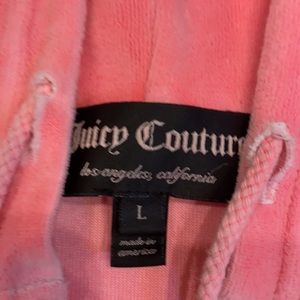 Juicy Couture hoodie pink size L, velour, pre-owned, missing some stones and check my measurements please, with bag