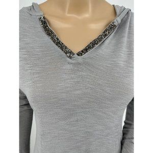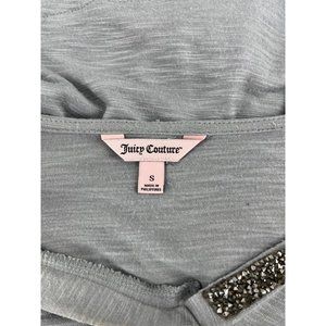 Juicy Couture hoodie top small hi lo gray bling white contrast
