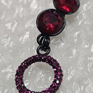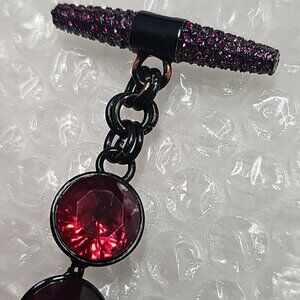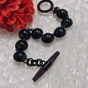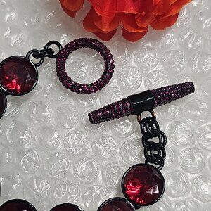 The bracelet features a toggle closure and is adorned with dark red crystal rhinestones set in black tone metal, creating a beautiful and elegant design.
