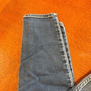 These blue jeans feature a straight leg design, offering a timeless and versatile look. Made from durable denim, they showcase a classic style with subtle color variations for a slightly worn appearance. Perfect for everyday wear, these jeans are a staple in any wardrobe. No distressing. Lots of stretch