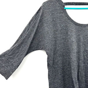 Juicy Couture size small gray sparkly half sleeve curved hem top