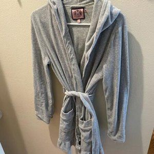 Juicy Couture velvet robe with hood in EUC. Little heart charm on one pocket. Ruffle detail on the bottom. Pretty trim on pockets and sleeves.
