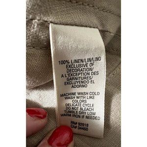 Chic and stylish, this Juicy Couture women's tan linen jacket in size medium is a wardrobe staple. The gathered waist and pockets add a practical yet fashionable touch. • Women's size medium • Tan linen material • Gathered waist for fitted look • Features pockets for convenience • Brand: Juicy Couture Condition: Pre-Owned Good Thank you and please check back as I am adding new items daily.
