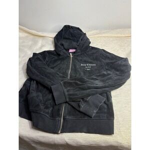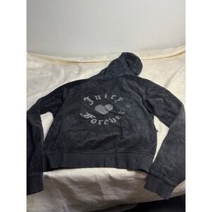 Juicy Couture x Forever 21 Black Velour Rhinestone Hooded Zip Up Jacket Size medium. In good preowned condition have any questions feel free to ask.