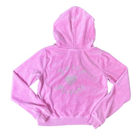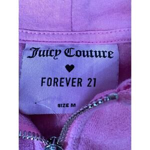 Juicy Couture x Forever 21 Velour Pink Rhinestone Hooded Zip Up Hoodie Jacket MD