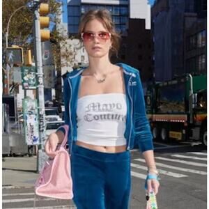 Juicy Couture x Kraft Real Mayo S Collab Velour Hoodie Blue Y2K NO Drawstring