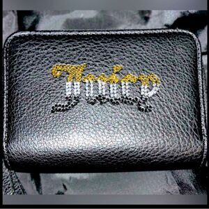 Juicy Couture Black Wallet OS Gold Ombré Double Med Zip Crystal Bling Logo NEW