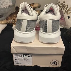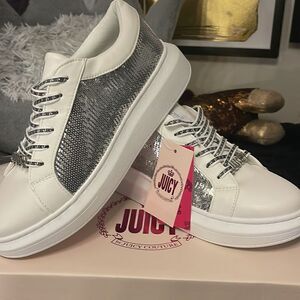 Juicy Couture Della Sneaker trainer shoe silver white sequin bling bbw sz 10 nib