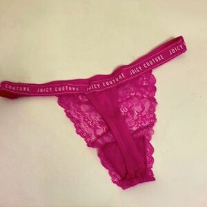 Hot Pink Fuchsia String Logo Waistband Sheer Lace Thong- Juicy Couture