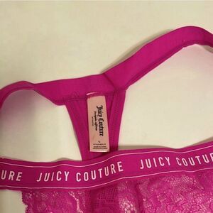 Juicy Couture Hot Pink Fuchsia Logo Waistband String Sheer Lace Thong