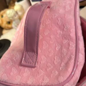 Soft pink quilted design. Silver zipper detail. Perfect for organizing cosmetics. Two little minor spots that should come out with a little bit of soap and scrubbing.