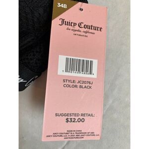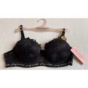 Juicy Couture Push Up Sexy Glam Lace bra Sz 34B Black Underwire Logo JC2076J
