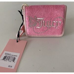 Juicy Couture Wing It Card Case Key Fob Wallet Pink Lemonade Butterfly Bling NEW