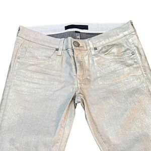 Juicy Jean Couture Gold Metallic Polished Cotton Skinny Jeans The Skinny Size 26
