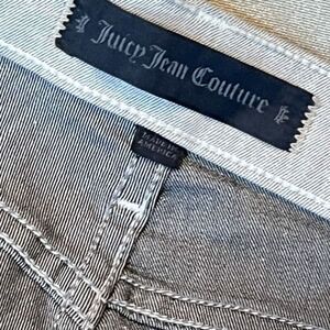 Made of 74% cotton, 24% polyester, and 2% spandex. Features a gold metallic polished overlay. Laying flat measure 14 " in the waist, 16.25" in the hips, 7.5" rise, and 33" inseam. Be sure to check out all of my other Juicy Couture listings.