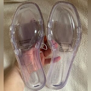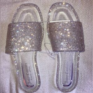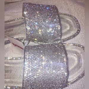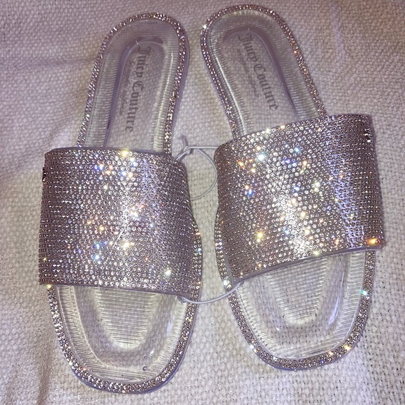 NWT, Juicy rhinestone slides. Clear base with rhinestones. Like jelly sandals. Size 7. Pet free/smoke free home.