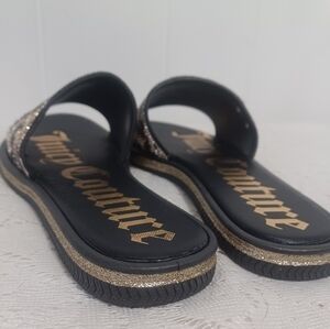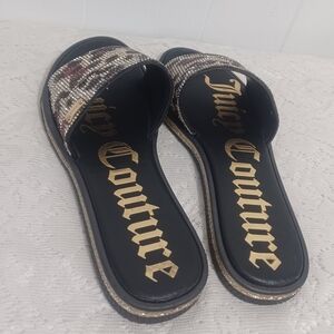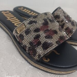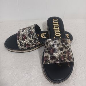 Juicy Couture Leopard Animal Print Rhinestone Slide On Sandals.