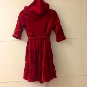Authentic pre owned JUICY velour robe. Cotton on the inside. Royal burgundy color. With velour belt. Size petite so runs like a small.