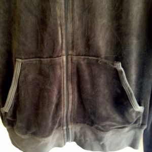 Gently used. Authentic Juicy Couture. Grey, zip up hoody. "For Girls Who Like Stuff" detailed on back in pink glitter. Only wear & tear was a little bit of the hem attaching the hood started to come undone and I hemmed it back together, & then the seam on the left pocket has come undone as shown in the picture. But otherwise it's in great shape and super adorable!!