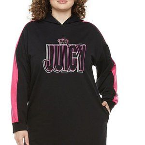 Juicy by Juicy Couture Womens Sz Small Black Long Sleeve Hoodie Sweatshirt Dress with Juicy Logo in Pink & White NWT. Retails MSRP $65