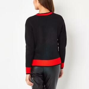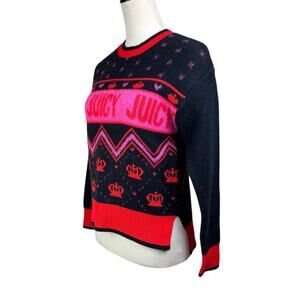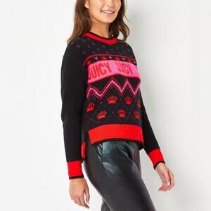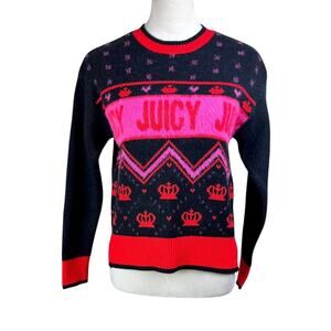 Juicy by Juicy Couture Black Pink Red Knit Fuzzy Crew Neck Pullover Sweater