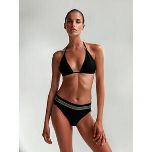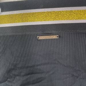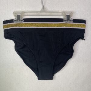 The Juicy Couture bikini bottoms in size Medium are a stylish addition to any woman's swimwear collection. These purple bottoms feature a metallic waistband with glitter accents, adding a touch of glam to your beach or poolside look. Made from a comfortable blend of nylon and spandex, these bikini bottoms offer a stretchy and secure fit, perfect for enjoying a day in the sun. Keep in mind that these bottoms should be hand washed to maintain their quality, and remember to have a great time lounging by the water in style.