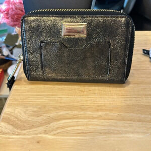 6 1/2 inches wide and 4 1/2 inches long. It’s really cute. It has like up a shiny black and silver to the outside. It is loaded with pockets. There is one on the front one on the back and then, if you can see the inside has many slots for your cards, and then another slot for folding money or the size of this billfold you’re getting a lot of good space.
