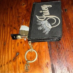Juicy couture black velour keychain coin card holder y2k crown logo heart patch