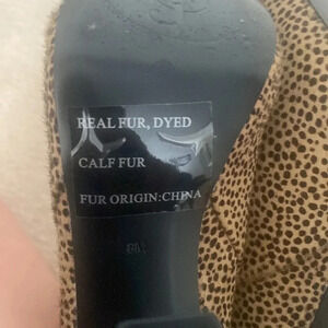 These are juicy couture size 8 leopard boots. They have a zipper in the back with leather running down the middle. The zipper is gold. I’ve only been worn once.