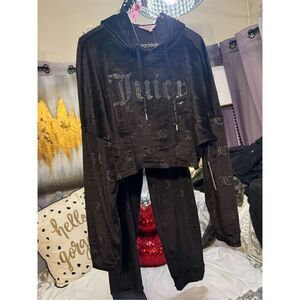 Embossed logo jc(gothic) velour/velvet w/ og big bling (rhinestone crystal diamond diamante) juicy logo across chest hooded/hoodie w/drawstrings & matching joggers pants black