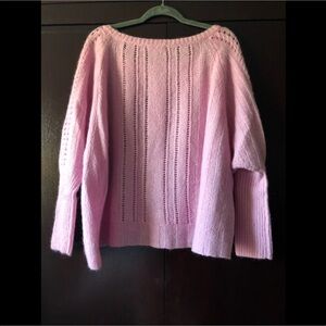 Juicy oversized mohair wool crewneck open knit sweater in bubblegum pink L