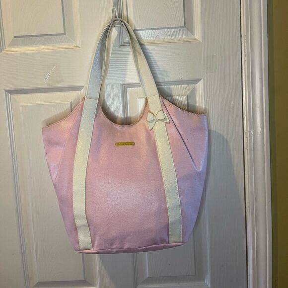 Juicy Couture Canvas metallic pink and white large tote bag.
