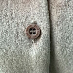 Technically sleepwear, this juicy couture Y2K style silky soft pink velour cropped button up with silver bling branding needs to be seen! Metallic silver stud logo on the front pocket and juicy print large across the back. Branded buttons. Laying flat measures 21 inches shoulder to hem and 19 inches armpit to armpit. The T-shirt version of this top is very easy to find, but the cropped button up version is more of a unicorn.