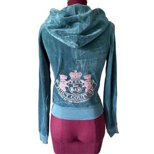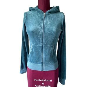 Juicy Couture Y2K Velour Hooded Full Zip Teal Jacket size S