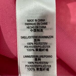 Such a cute summer dress! Can be worn literally everywhere! Pink and orange coordinating color block graphic print with the JC logo scattered throughout. Ties in back leaving a keyhole opening. Side zip for easy on off, fully lined.