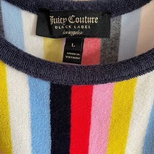 Juicy Couture Black Label Striped Multicolor Terrycloth Bodysuit. Thong style with snap gusset. Has a tiny snag, shown in pic. Size Large