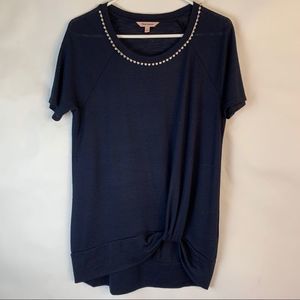 Juicy Couture Large Navy Twist Front Snit Top Rhinestone Scoop Neck SS EUC 7907.