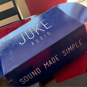 Juke Audio amplifier in sleek black. Perfect for enhancing your audio experience.