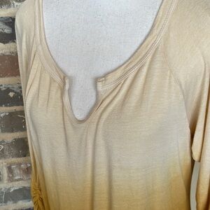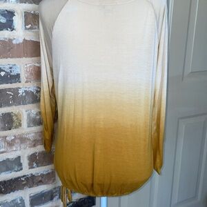 Jule Gold Ombre Tied Waist Top Size Large. Gathered 3/4 length sleeves. Good condition. Approximate measurements in photos.