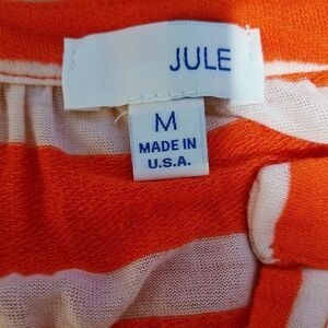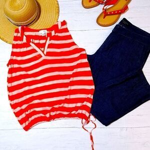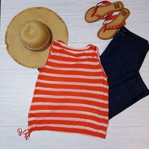Juicy orange and creamy striped sleeveless top with a drawstring waist