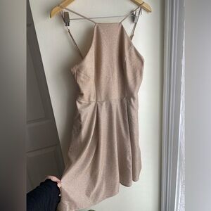 Jules & Cleo Glitter Gold High Neck Short A-Line Dress Size 10 Fit & Flare Mini