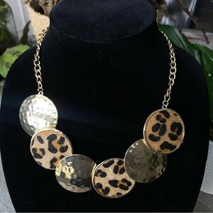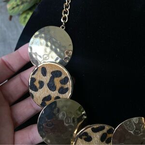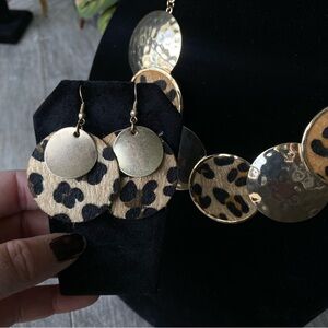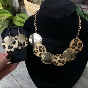 Jules Gold Tone Leopard Print Necklace & Earring Set