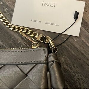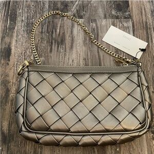 Clutch or crossbody, removable gold strap, dress up or down, woven with top zipper. Zipper closure compartment inside