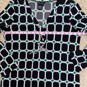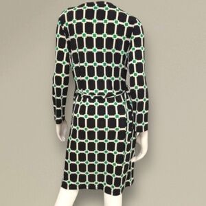 Jules & Leopold Black Green Geometric Belted Midi Dress Silver Chain Detail Sz S