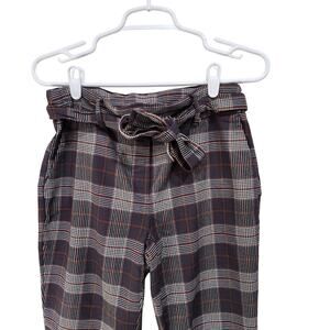 Jules & Leopold Checkered Plaid Brown Tie-Waist Trousers Stretchy Pants Medium