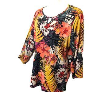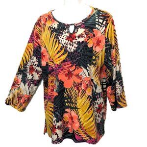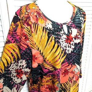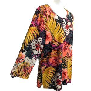 Jules & Leopold Long Sleeve Tunic Top NWT Medium Bright Fall Colors Tropical