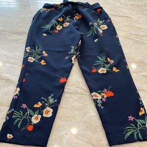 Jules & Leopold Retro Paper-Bag Waist Tie Belt Cigarette Pants Navy Floral SMALL